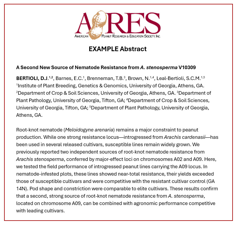 - Affiliation: Each author's name should be followed by the author(s) institution(s) name and location. Fully spell out the institution's name, e.g. University of Georgia, North Carolina State University, U.S. Department of Agriculture. Note: the same author order must be used if published for the Bailey Award.