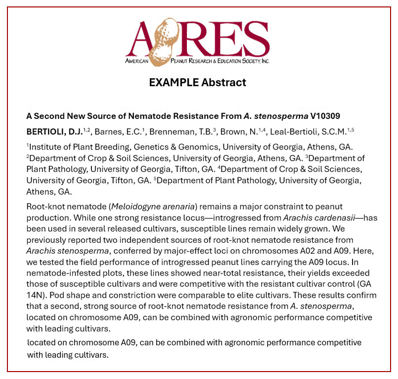 - Affiliation: Each author's name should be followed by the author(s) institution(s) name and location. Fully spell out the institution's name, e.g. University of Georgia, North Carolina State University, U.S. Department of Agriculture. Note: the same author order must be used if published for the Bailey Award.